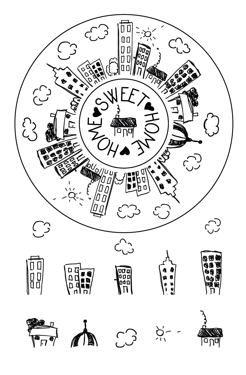 „Home Sweet Home – Städtekranz“ – Selbstklebende Siebdruck-Schablone
