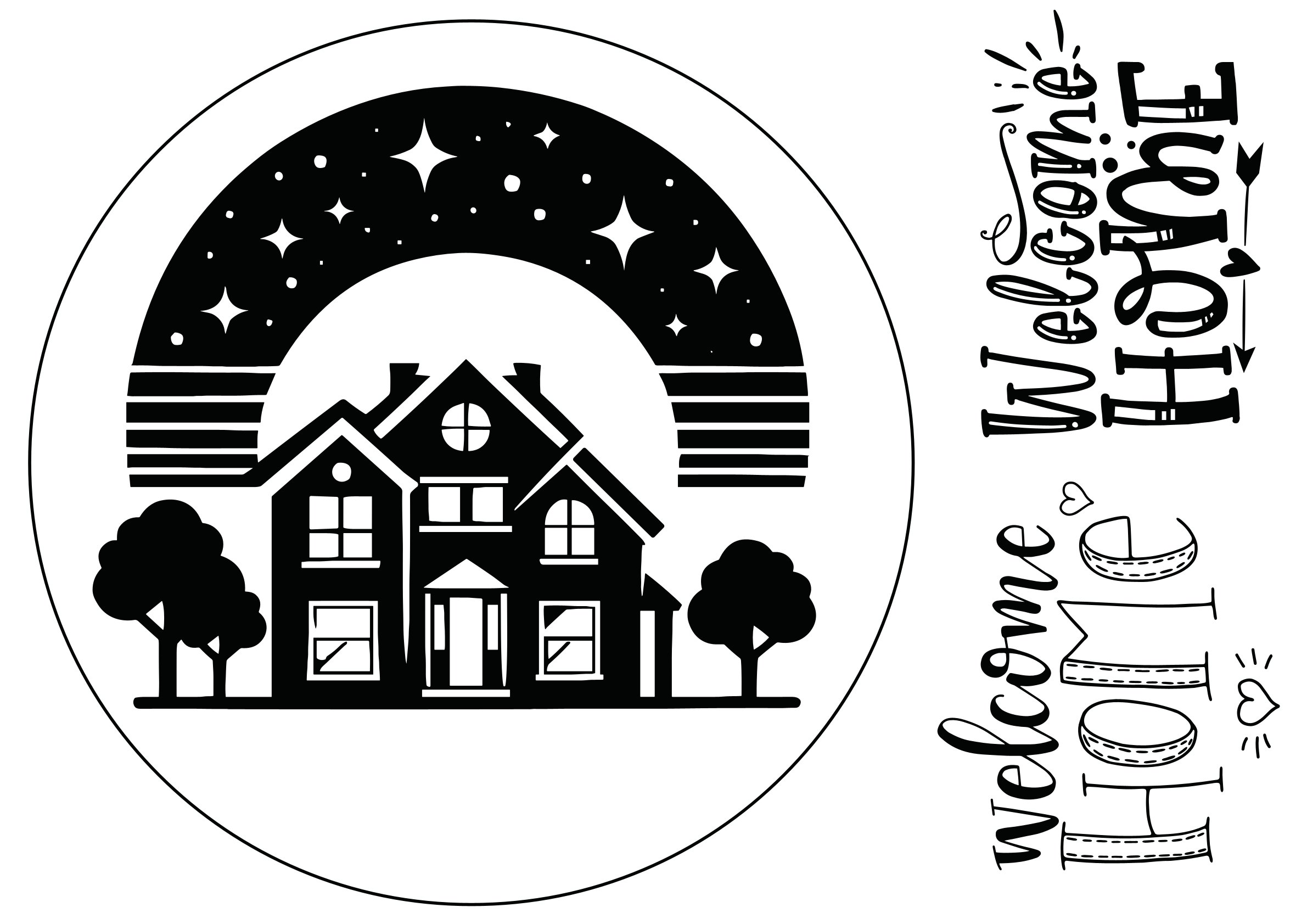 „Traumhaus unter Sternen – Welcome Home“ – Selbstklebende Siebdruck-Schablone