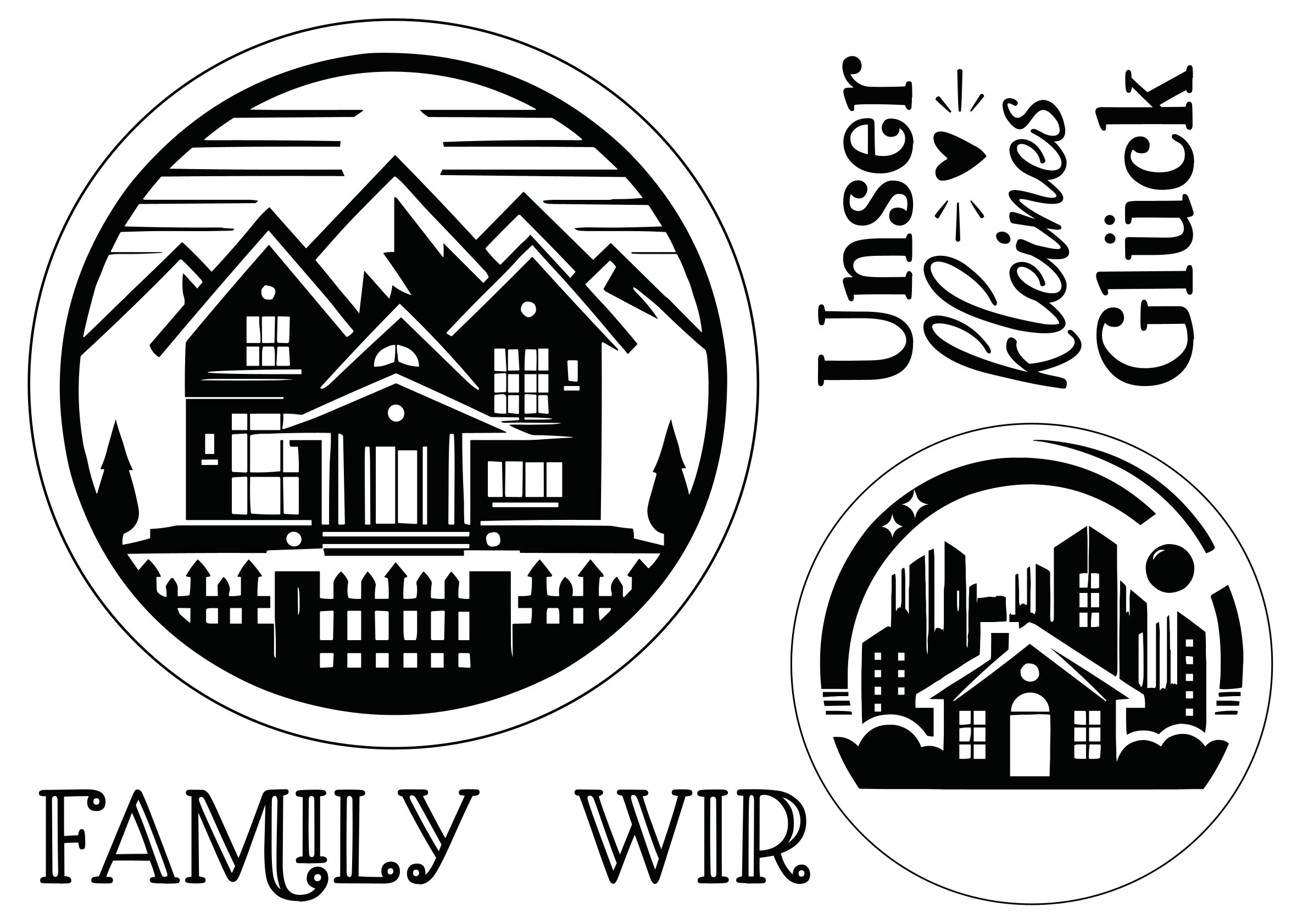 Heimatmomente – Unser kleines Glück – Family – Wir – Selbstklebende Siebdruck-Schablone