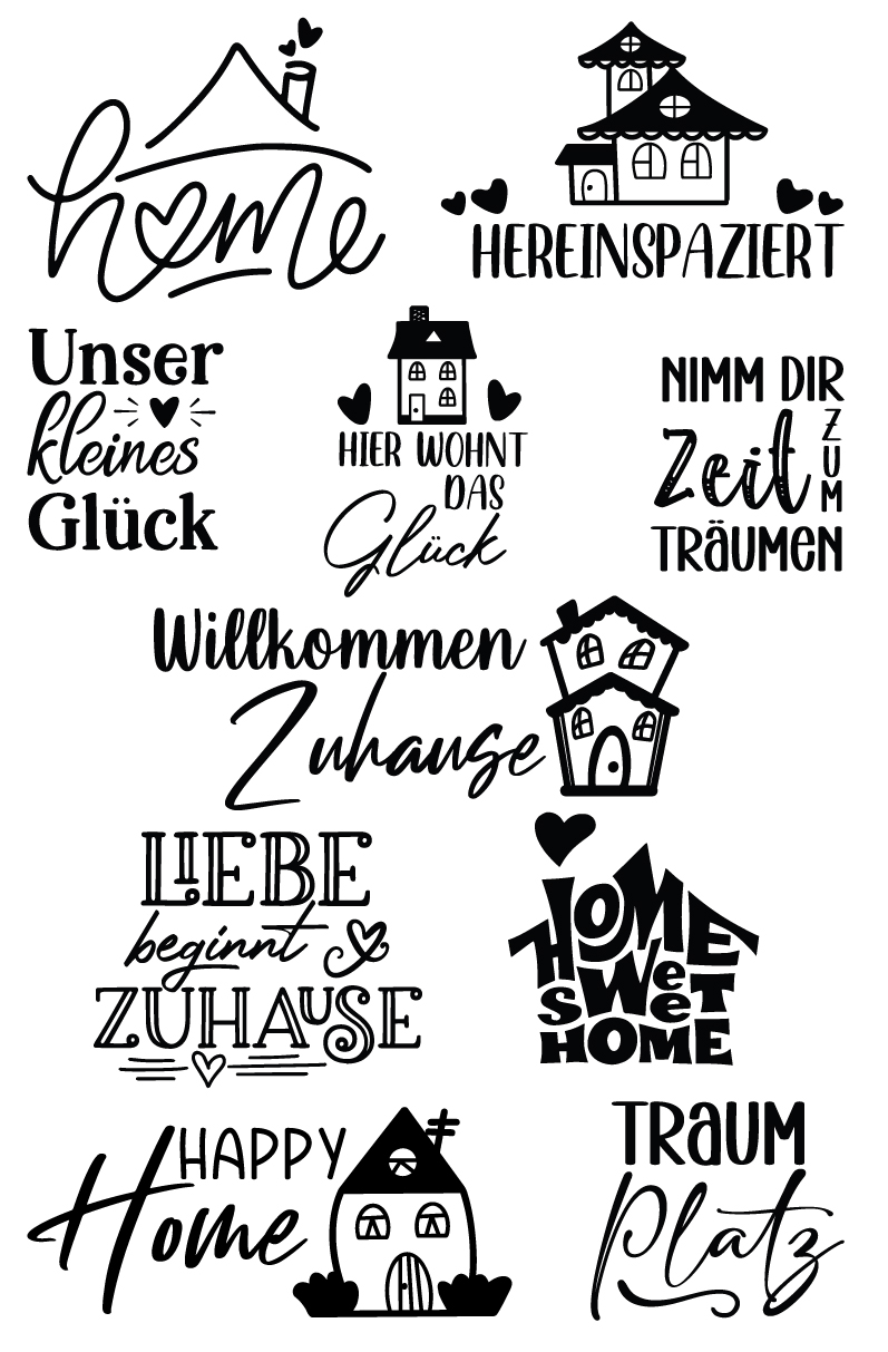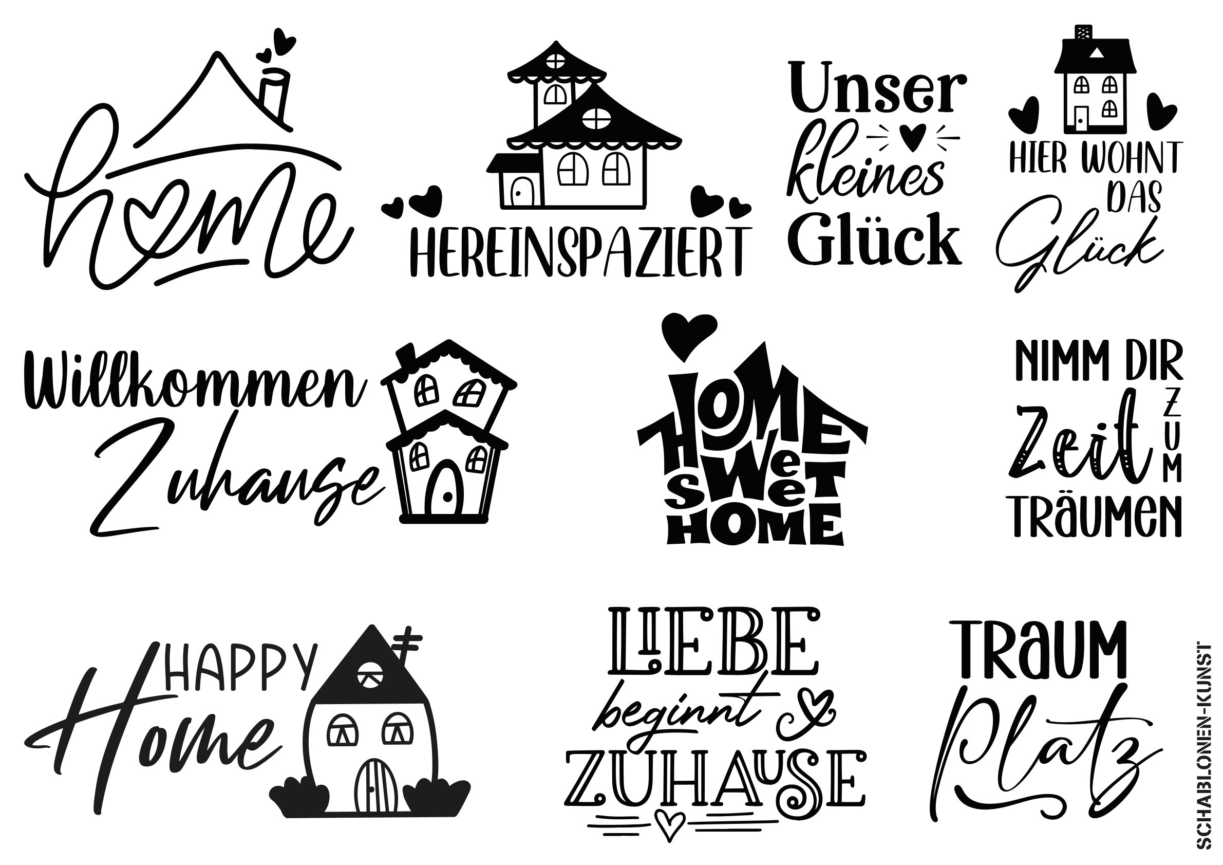 Selbstklebende Siebdruck-Schablone – „Happy Home Collection – Herzenssprüche für dein Zuhause“